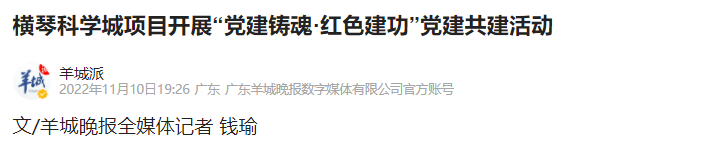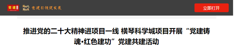 “本次‘黨建鑄魂·紅色建功’黨建共建活動(dòng)是在大橫琴集團(tuán)打造橫琴科學(xué)城項(xiàng)目黨建聯(lián)建生態(tài)圈的基礎(chǔ)上的一次深化拓展,對推動(dòng)黨建和項(xiàng)目建設(shè)的融合發(fā)展,引導(dǎo)一線黨員堅(jiān)定理想信念,牢記黨的宗旨,增強(qiáng)責(zé)任擔(dān)當(dāng),有著積極意義,將進(jìn)一步推動(dòng)黨的二十大精神在重大項(xiàng)目一線落地見效?!贝髾M琴集團(tuán)黨委書記田偉介紹。