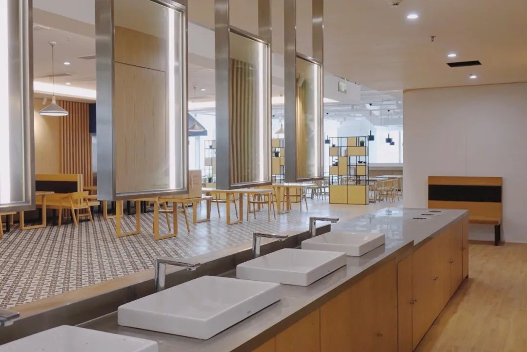 餐廳內(nèi)部裝修精致,環(huán)境簡潔明快,就餐動(dòng)線設(shè)計(jì)科學(xué)合理,空間劃分為取餐區(qū)、用餐區(qū)、餐具回收清理區(qū)及后廚,實(shí)現(xiàn)就餐體驗(yàn)和就餐時(shí)間的雙提升。