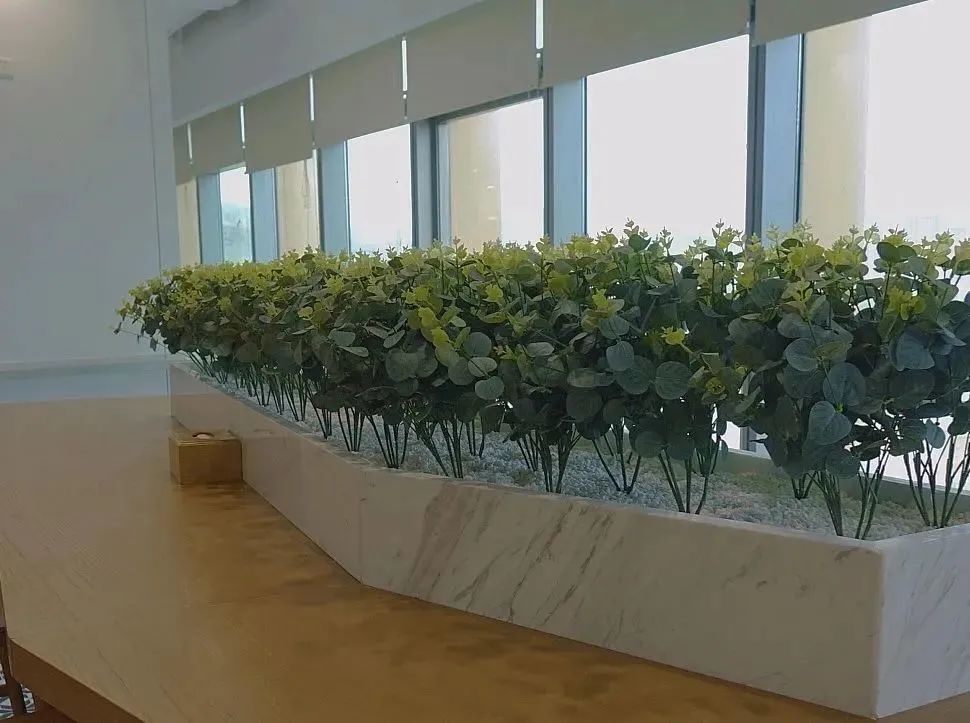 在視覺體驗(yàn)上,餐廳的整體設(shè)計(jì)合理利用餐廳的區(qū)位優(yōu)勢——視野開闊,四周風(fēng)景優(yōu)美,向北可見車水馬龍、綠樹環(huán)蔭的環(huán)島東路,南側(cè)相連優(yōu)雅別致、花團(tuán)錦簇的屋頂花園,內(nèi)外環(huán)境相得益彰,使就餐人員在繁忙的工作之余,收獲輕松舒適的就餐體驗(yàn)。