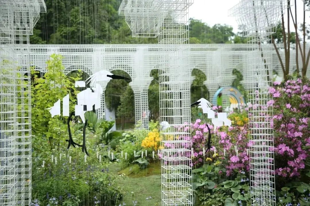 本著資源化、綠色低碳的原則,橫琴展園采用環(huán)保搭建材料,園內(nèi)的特色門廊、景觀座椅、休閑樹池、月洞門等景觀構(gòu)筑物由多種可拆解的金屬絲單體構(gòu)筑而成,不僅帶來了獨特的藝術(shù)美感和互動體驗,還能回收再利用,減少材料消耗。