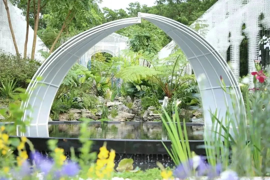 以“筑夢伊甸園”為名,以經(jīng)典葡式莊園庭院為原型,以花為材,橫琴展園將多種粵澳特色元素與綠色環(huán)保理念相結(jié)合,串聯(lián)起“落花”、“乘風(fēng)”、“盈滿”三大主題空間,園內(nèi)共展示了幌傘楓、桫欏、鳳尾蕨等橫琴本土植物和杜鵑、月季、百子蓮等新品種植物共計130余種。