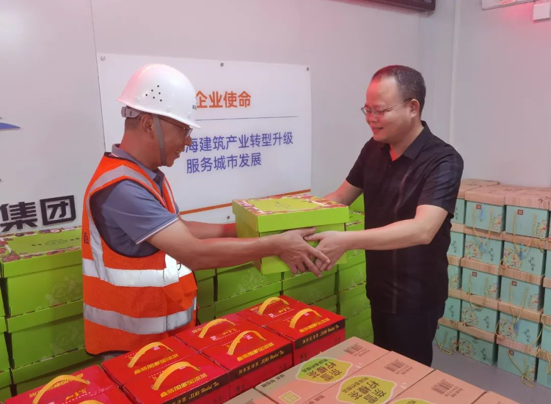 夏日炎炎,驕陽(yáng)似火,三伏天來(lái)臨,珠海開(kāi)啟了“高溫炙烤”模式,為切實(shí)做好基層一線職工的降溫防暑工作,把關(guān)懷送到基層、送到一線,7月10日,市總工會(huì)四級(jí)調(diào)研員張羅燦一行到珠海建工集團(tuán)金琴健康港項(xiàng)目部開(kāi)展“產(chǎn)業(yè)第一,勞動(dòng)筑夢(mèng)”送清涼活動(dòng)。