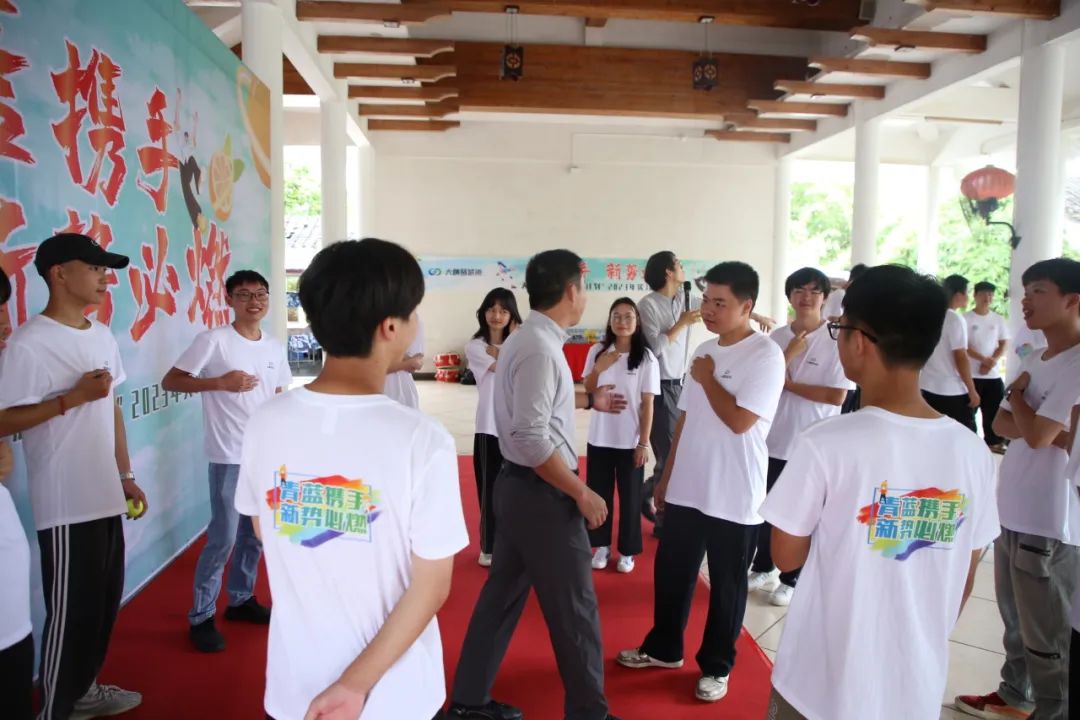 拓展培訓(xùn)開始,實(shí)習(xí)生們熱情洋溢,朝氣滿滿投入其中。同樣來自珠海技師學(xué)院的新進(jìn)實(shí)習(xí)生和留任師兄師姐們初次見面,青藍(lán)攜手,通過破冰游戲互相認(rèn)識。