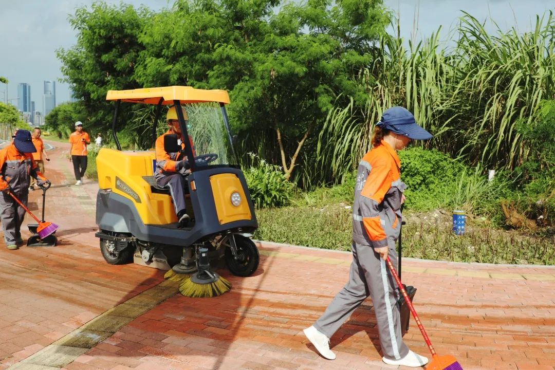 在合作區(qū)不同的道路街巷,都遍布著環(huán)衛(wèi)工作者的Citywalk路線,在市政道路上,他們熟練地駕駛著沖洗車、機(jī)掃車、高壓清洗車等作業(yè)車輛,對(duì)城市路面進(jìn)行灑水降塵、清掃沖洗,在人行道、在海堤、在公交候車亭、在公廁里,在社區(qū)內(nèi)街小巷、在村居內(nèi)房前屋后,他們循環(huán)保潔的身影也隨處可見,“沖、掃、吹、清、運(yùn)、巡”,一套環(huán)衛(wèi)作業(yè)組合拳,讓合作區(qū)容光煥發(fā)。