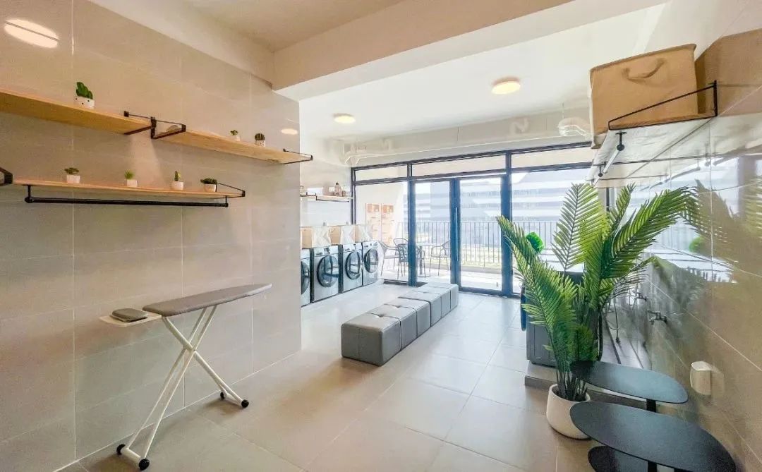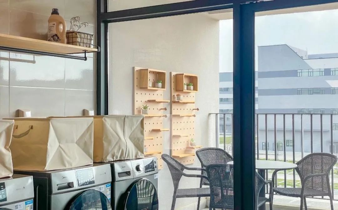 宿舍內(nèi)配備公共洗衣房,熨衣板、洗衣機、晾衣簍、洗手池等設(shè)施一應(yīng)俱全。