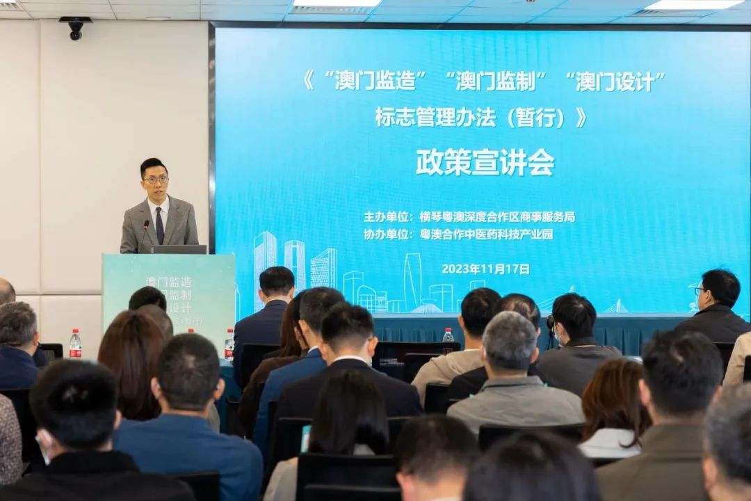 11月17日,《“澳門監(jiān)造”“澳門監(jiān)制”“澳門設(shè)計(jì)”標(biāo)志管理辦法(暫行)》(以下簡(jiǎn)稱《管理辦法》)政策宣講會(huì)在橫琴粵澳深度合作區(qū)(以下簡(jiǎn)稱合作區(qū))琴澳國(guó)際法務(wù)集聚區(qū)舉行。此次宣講活動(dòng)由合作區(qū)商事服務(wù)局主辦,由參與《管理辦法》起草的珠海大橫琴集團(tuán)有限公司下屬企業(yè)珠海大橫琴科技發(fā)展有限公司(以下簡(jiǎn)稱大橫琴科技公司)提供支持?;顒?dòng)旨在幫助企業(yè)全面了解申請(qǐng)標(biāo)志的資格條件、使用標(biāo)志的具體要求,以及標(biāo)志運(yùn)行管理的保障機(jī)制等。