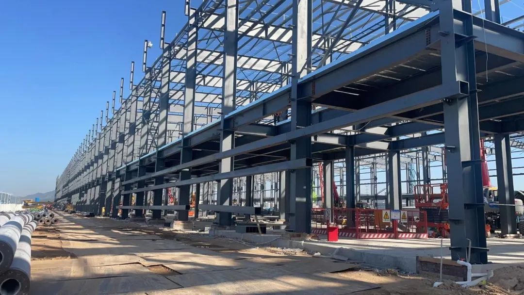 海四達6GWh儲能項目占地面積8.58萬㎡,計容面積11.25萬㎡,含2棟生產廠房,1棟辦公樓,1棟宿舍樓和7棟生產輔助用房。其中1棟廠房,長360米,寬86米,高20米,2棟廠房,長125米,寬86米,高16米。