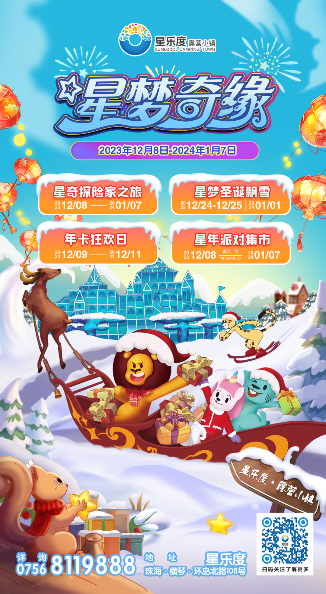 作為橫琴乃至大灣區(qū)知名休閑旅游度假目的地,由珠海大橫琴星樂(lè)度文旅發(fā)展有限公司(以下簡(jiǎn)稱大橫琴星文旅公司)運(yùn)營(yíng)的橫琴星樂(lè)度·露營(yíng)小鎮(zhèn)推出了“星夢(mèng)奇緣”主題迎春活動(dòng),元旦假日期間將推出夢(mèng)幻飄雪、歡樂(lè)小丑、跨年LIVE、跨年演藝等豐富環(huán)節(jié)。