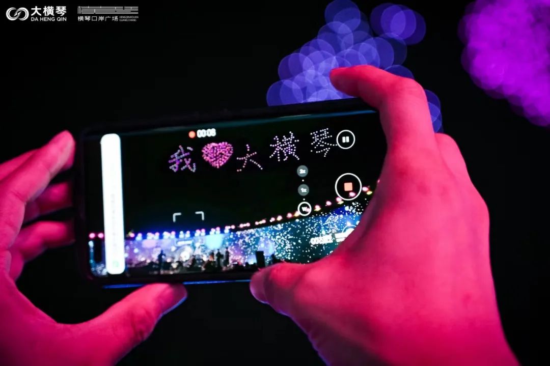 當(dāng)晚,橫琴口岸正上空,還演繹了一場點(diǎn)亮夜空、打破傳統(tǒng)的星空大秀。一架架無人機(jī)排著整齊的隊(duì)列,在夏日的夜空里亮起了點(diǎn)點(diǎn)星光。機(jī)群盤旋上升匯聚,在空中先后編織出“我愛橫琴”、“25”、“金蓮花”等一個(gè)個(gè)絢麗的方陣,在夜空中留下了一個(gè)個(gè)美好的祝福,而在場的觀眾也隨著無人機(jī)方陣的變化,許下對琴澳協(xié)同發(fā)展的美好期許。