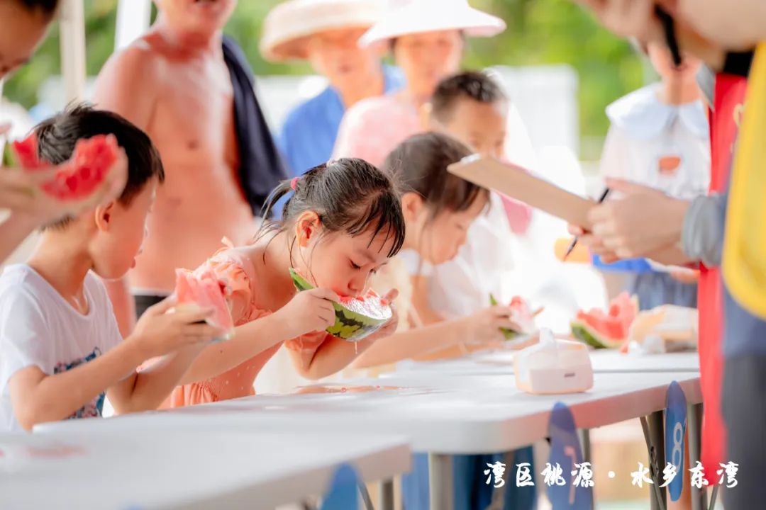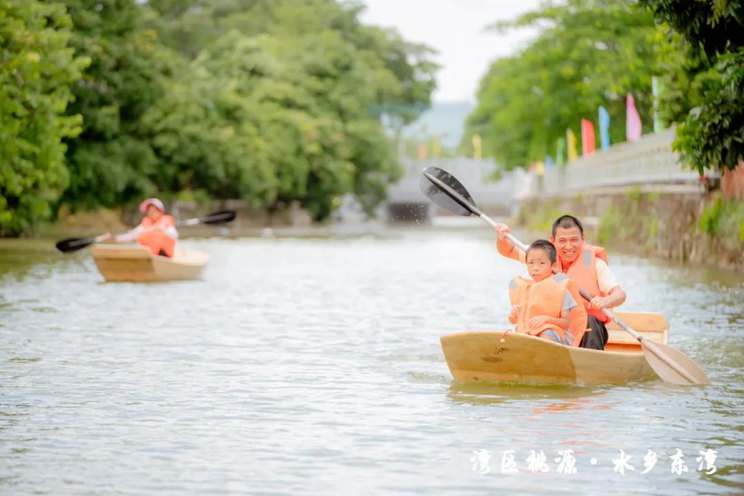 隨后,現(xiàn)場的水車伴著歡笑聲噴灑出陣陣水霧,也標(biāo)志著此次“東灣夏日清涼大作戰(zhàn)”活動正式開始。在接下來的兩天時間里,活動將充分結(jié)合東灣村民俗文化和稻田、河涌等良好的生態(tài)環(huán)境基底,通過農(nóng)艇競渡、趣味戲水、非遺剪影、東灣美食、清涼集市等元素,將傳統(tǒng)鄉(xiāng)村元素與現(xiàn)代競技、活動相融合,打造一系列清涼刺激的互動體驗?;顒有问截S富多樣,既有團(tuán)隊合作的競技項目,也有輕松愉快的趣味游戲,還有特色清涼集市供游客休閑購物,可謂是“面面俱到”。
