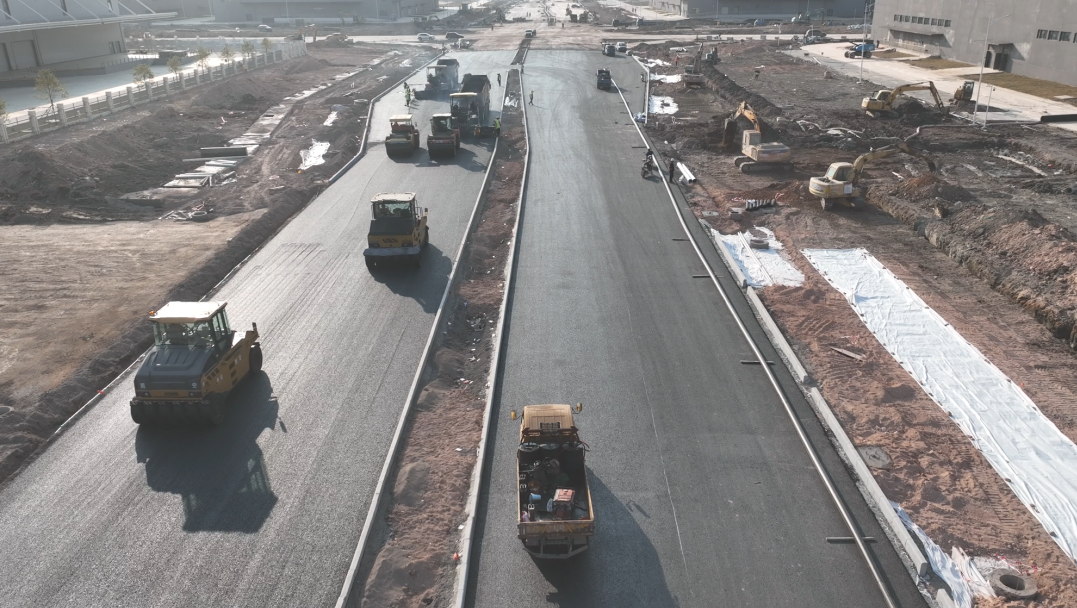 富山工業(yè)園二圍北片區(qū)園區(qū)配套道路工程是斗門大橫琴5.0產(chǎn)業(yè)新空間的重要配套,為二圍北逾200萬(wàn)平方米的廠房提供交通、水電等配套設(shè)施,包含13條市政道路,總長(zhǎng)約 15.55公里,建設(shè)意義重大,大橫琴股份為確保項(xiàng)目高效推進(jìn),克服地質(zhì)條件復(fù)雜、施工界面狹小等重重難關(guān),調(diào)集“人馬”,對(duì)緊要工序安排24小時(shí)連續(xù)作業(yè),對(duì)危險(xiǎn)性不高、工期緊迫的工序安排雙班作業(yè),與時(shí)間賽跑。