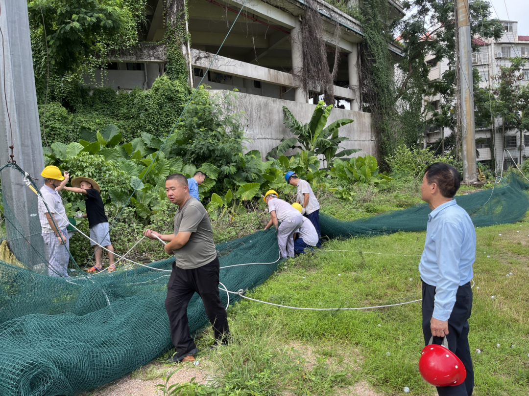 寶鷹建科迅速組織對所有在建項(xiàng)目的大型機(jī)械設(shè)備、工地的活動板房(辦公區(qū)、生活區(qū))、圍擋、加工棚、安全網(wǎng)等臨時(shí)設(shè)施進(jìn)行全面檢查和加固。對所有工地的臨時(shí)用電線路、配電箱(柜)進(jìn)行排查,臺風(fēng)來臨前切斷除應(yīng)急照明、排水設(shè)備外的所有非必要電源,防止觸電和電氣火災(zāi)事故。
