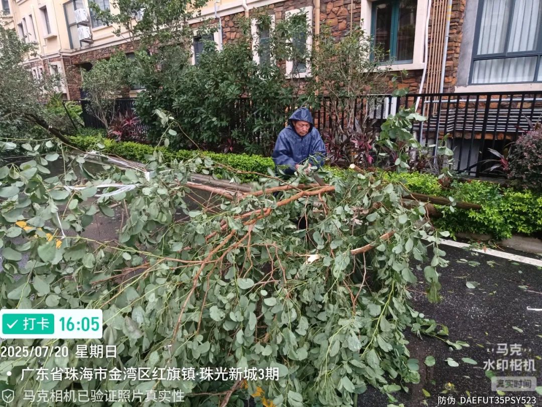 珠光物業(yè)公司迅速行動,全力以赴抓好臺風(fēng)防御各項(xiàng)工作,安排人員加強(qiáng)值班值守,全面開展隱患排查、加固設(shè)施、防汛排水等工作,同時(shí)通過微信等線上渠道保持與業(yè)主的緊密聯(lián)系,及時(shí)發(fā)布臺風(fēng)信息及安全防范指南。臺風(fēng)逐漸遠(yuǎn)離后,物業(yè)工作人員加緊進(jìn)行搶險(xiǎn)修復(fù)工作,堅(jiān)決守牢業(yè)主生命安全底線。