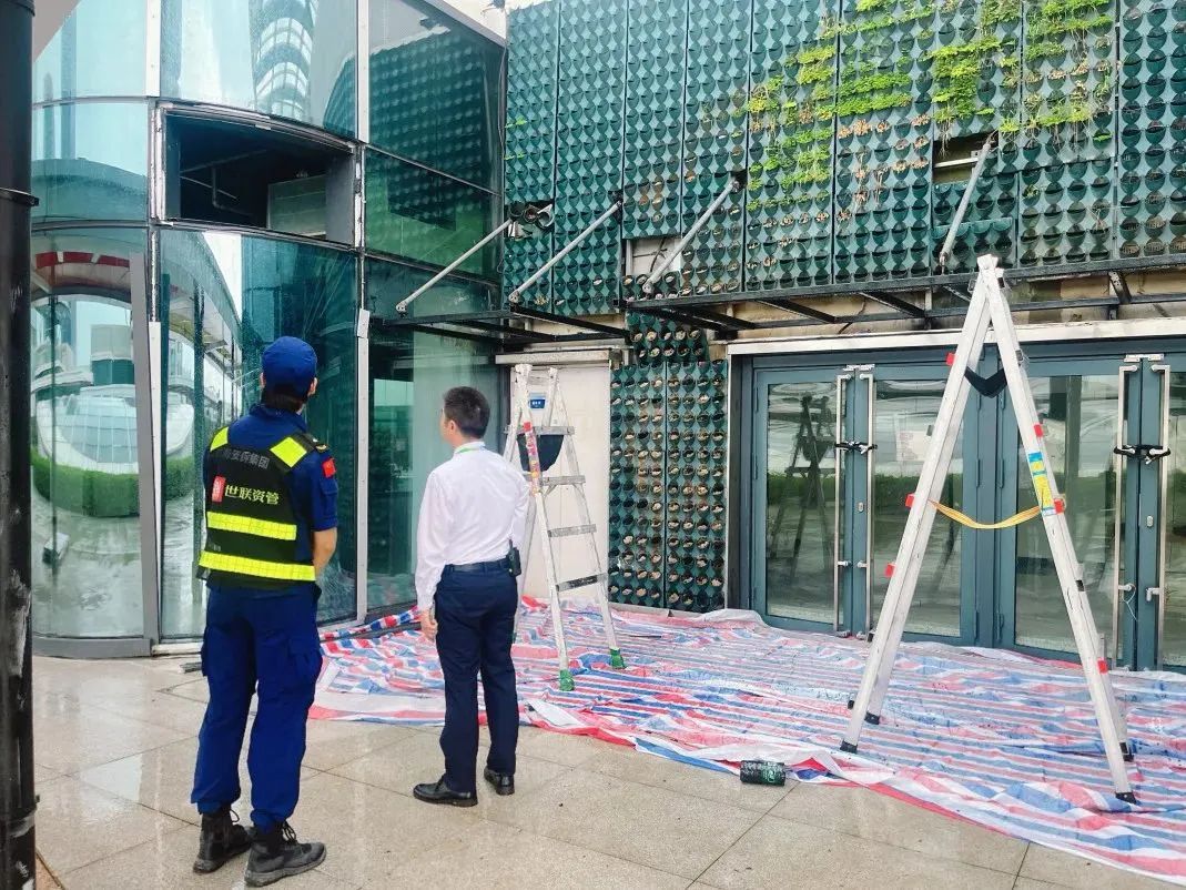 一是對園區(qū)內(nèi)所有建筑物門窗關(guān)閉情況進(jìn)行檢查,安排人員上門協(xié)助企業(yè)客戶關(guān)閉門窗并建立留存企業(yè)應(yīng)急聯(lián)系人聯(lián)系方式。二是對園區(qū)內(nèi)種植樹木進(jìn)行檢查,已加固并將過多過長的樹枝修剪858余棵。三是清理各建筑物樓頂天面雜物,疏通天面下水系統(tǒng);檢查各區(qū)地面排水井道,清理井內(nèi)雜物。四是放置防汛沙袋2200包至園區(qū)電梯、展廳處、天面、商鋪入戶門、樓層連廊、地庫入口等重點(diǎn)部位。五是收回園區(qū)室外水馬、鐵馬、雪糕筒、拒馬、商業(yè)外擺、煙灰缸、垃圾桶、花箱、一米欄、國旗等室外可移動物品約500個(gè)。六是協(xié)助企業(yè)客戶搬運(yùn)外擺花箱、休息桌椅、太陽傘物品約20余套。七是發(fā)出臺風(fēng)預(yù)警信號溫馨提示6宗。八是關(guān)閉斗門大橫琴5.0產(chǎn)業(yè)新空間C區(qū)及橫琴國際科技創(chuàng)新中心4幢運(yùn)動中心。九是啟動橫琴國際科技創(chuàng)新中心9號樓應(yīng)急避難場所1處,接收避難工人534 人。備用斗門大橫琴5.0產(chǎn)業(yè)新空間應(yīng)急避難場所G1、G2、G3廠房3處,以滿足園區(qū)防御工作需要。