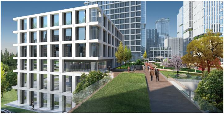 在研發(fā)辦公板塊,22棟建筑被精準(zhǔn)劃分為三種生命體量。180米超高層A塔以首層5.5米挑高,迎接企業(yè)總部入駐;50-100米高層B塔為成長(zhǎng)型科技企業(yè)定制4.5米層高與VIP洗手間(帶淋?。?4米獨(dú)棟C塔一、二層預(yù)留可拆卸樓板,打通后層高可達(dá)10米,首層最大荷載可達(dá)1200-1500kg/㎡,滿足生物醫(yī)藥企業(yè)的重型設(shè)備需求。