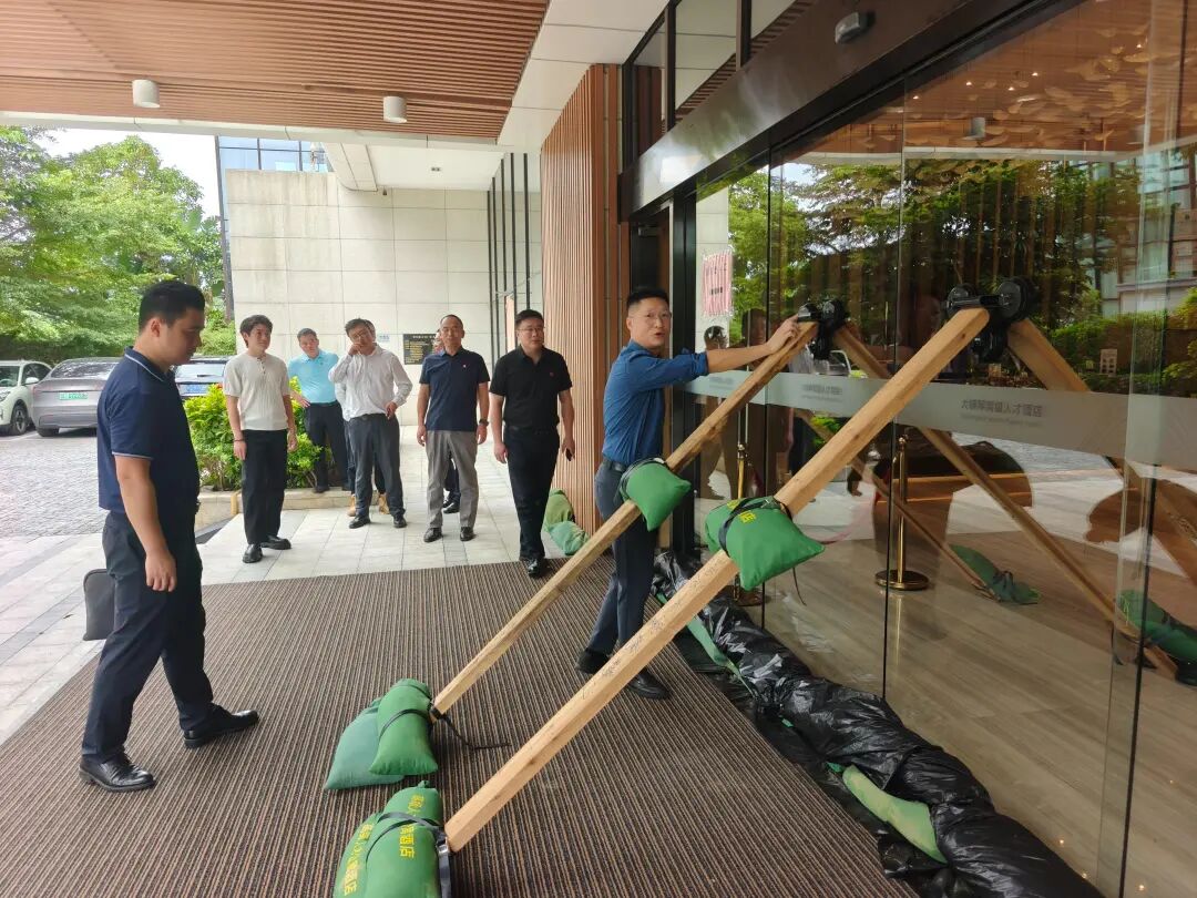 對珠光集團(tuán)旗下園區(qū)內(nèi)的樓宇廣告牌、生命通道、應(yīng)急避難場所等防汛防風(fēng)部位的隱患全面排查和清理。要求應(yīng)急人員全部到崗到位,對防汛物資,應(yīng)急物資準(zhǔn)備情況以及值班、搶險隊伍備勤情況和園區(qū)建筑物排水系統(tǒng)、消防系統(tǒng)、監(jiān)控系統(tǒng)、外立面及門窗系統(tǒng)進(jìn)行全面排查。做好園區(qū)企業(yè)客戶的安全保障工作,同時對園區(qū)企業(yè)和商戶盡數(shù)告知和勸導(dǎo),堅決落實“五停”措施,預(yù)備應(yīng)急避難場所。