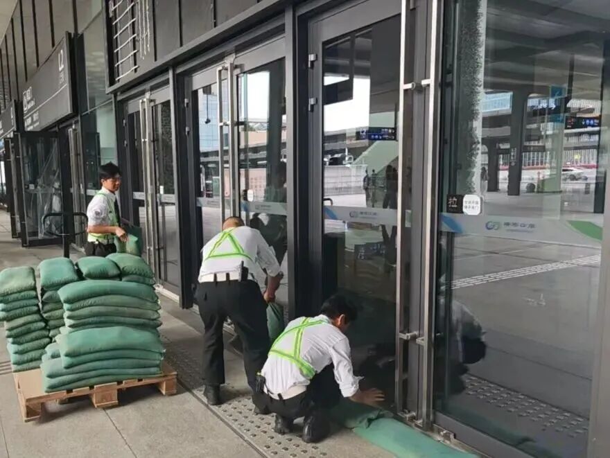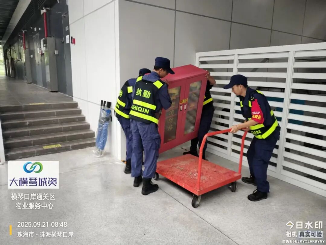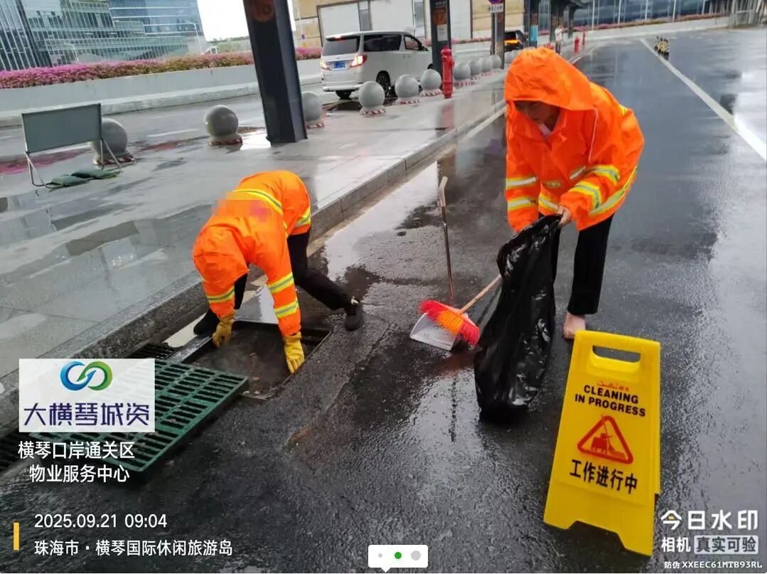在橫琴口岸區(qū)域,提前排查200多個集水井,調(diào)集230個緊固件加固門窗,近3000條沙袋、近100個防洪擋板、11臺水泵等應(yīng)對福臨道、地庫36處接駁口、負(fù)二層下沉庭院、U行車道等重點區(qū)域強(qiáng)排和封堵需要。同時對通關(guān)區(qū)域的100余扇玻璃門進(jìn)行加固,在易水浸區(qū)域放置沙袋、擋板。同時,全面清理雨水井、排水溝渠,確保排水暢通。